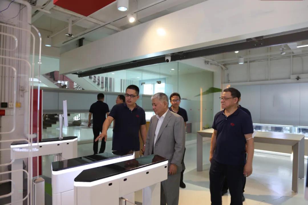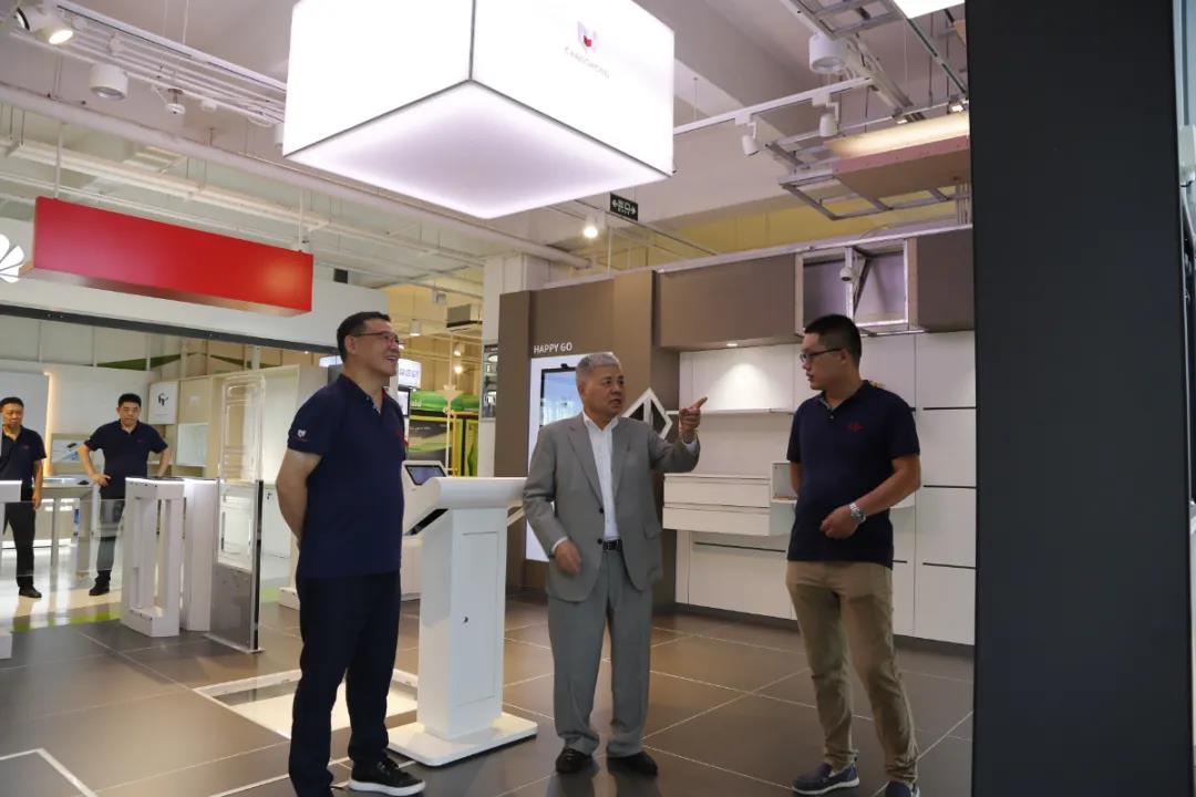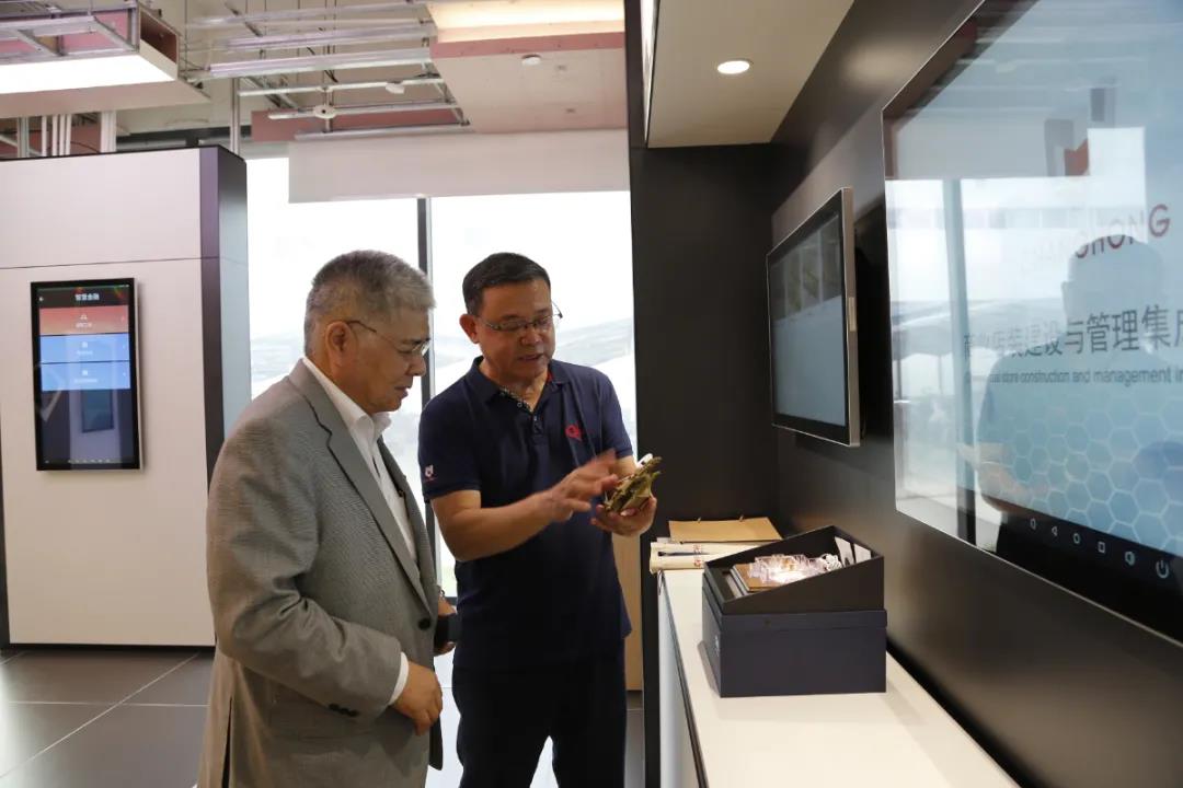 ▲常宏智能科技董事總經(jīng)理崔搖向楊先生介紹常宏智能化研發(fā)成果