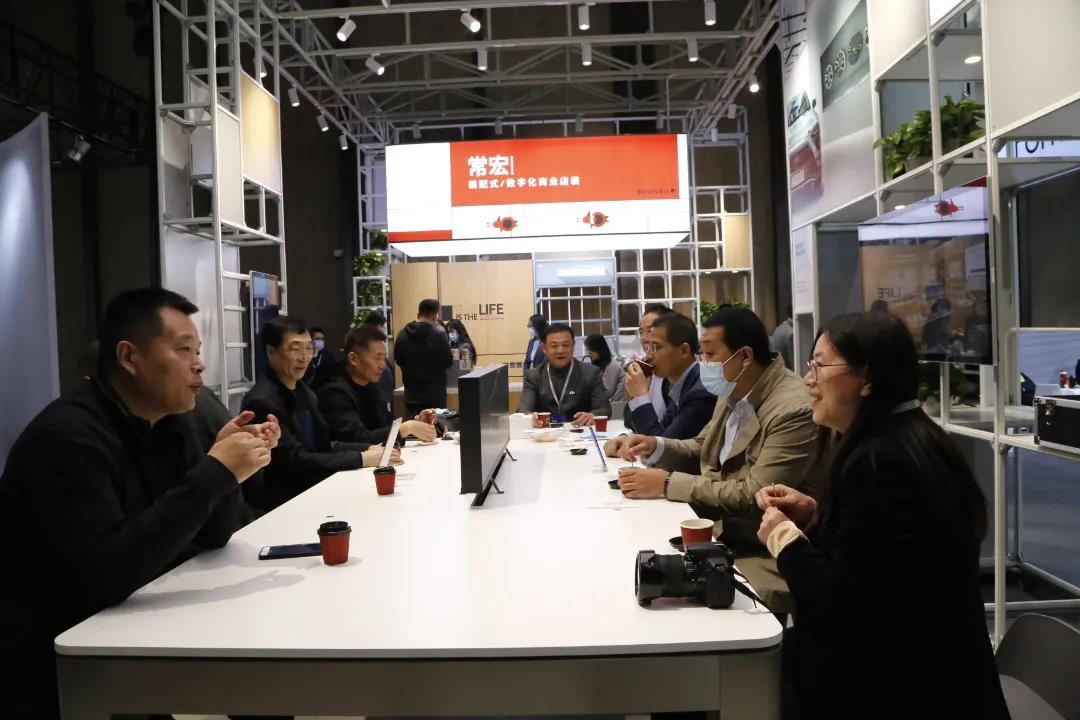 常宏如約在雄安主會(huì)場(chǎng)E3展位亮相,接待各界朋友,政府領(lǐng)導(dǎo)、與會(huì)嘉賓、高校學(xué)者、藝術(shù)工作者等嘉賓前來(lái)參觀(guān)、指導(dǎo)工作。此次常宏展位整體運(yùn)用數(shù)字化設(shè)計(jì)(BIM)、裝配式技術(shù)建造,節(jié)約資源(材料可重復(fù)利用回收),綠色、環(huán)保、低碳,大大得縮短了工期。此外還展示了智慧云柜,商業(yè)空間、家居智慧環(huán)控系統(tǒng)等產(chǎn)品,吸引了來(lái)往的觀(guān)眾駐足。