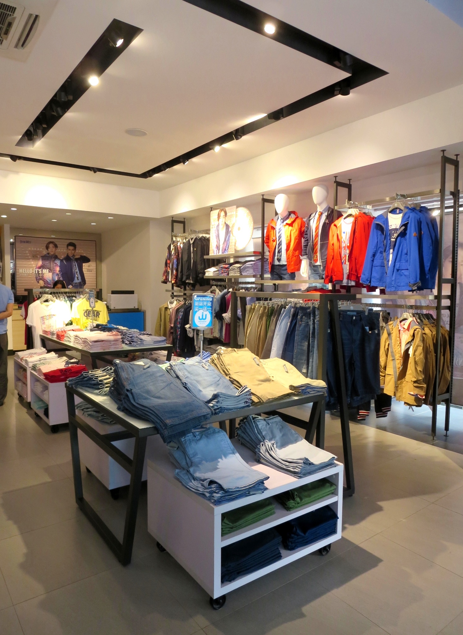 真維斯上海南京東路店面積150平方米,位于上海黃浦區(qū)南京東路。全新的真維斯LOGO以簡潔的形象體現(xiàn)品牌,傳遞出輕快美感,淺藍色的色彩運用獨具匠心;店內(nèi)裝修陳列更是時刻散發(fā)出年輕、時尚的氣息,店內(nèi)陳設(shè)顏色的互相搭配達到和諧統(tǒng)一,加強層次縱深感,動感、活力的元素在這里得到最大限度的詮釋。極具特色的櫥窗陳列展示了當季最新的潮流服裝,彰顯著真維斯品牌的形象:年輕、時尚、活力、自由。
