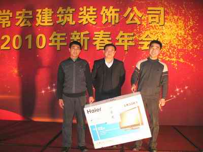 宴會開始,員工舉杯同慶,  滿懷豪情,相互祝愿。員工及家屬朋友多才多藝,熱情地參加演出,紛紛獻上精彩節(jié)目。晚會的重頭戲“抽獎”環(huán)節(jié)更是扣人心弦,常宏裝飾承德辦事處施工主管張志英喜得本場晚會的大獎,將晚會現(xiàn)場帶入了又一個高潮……