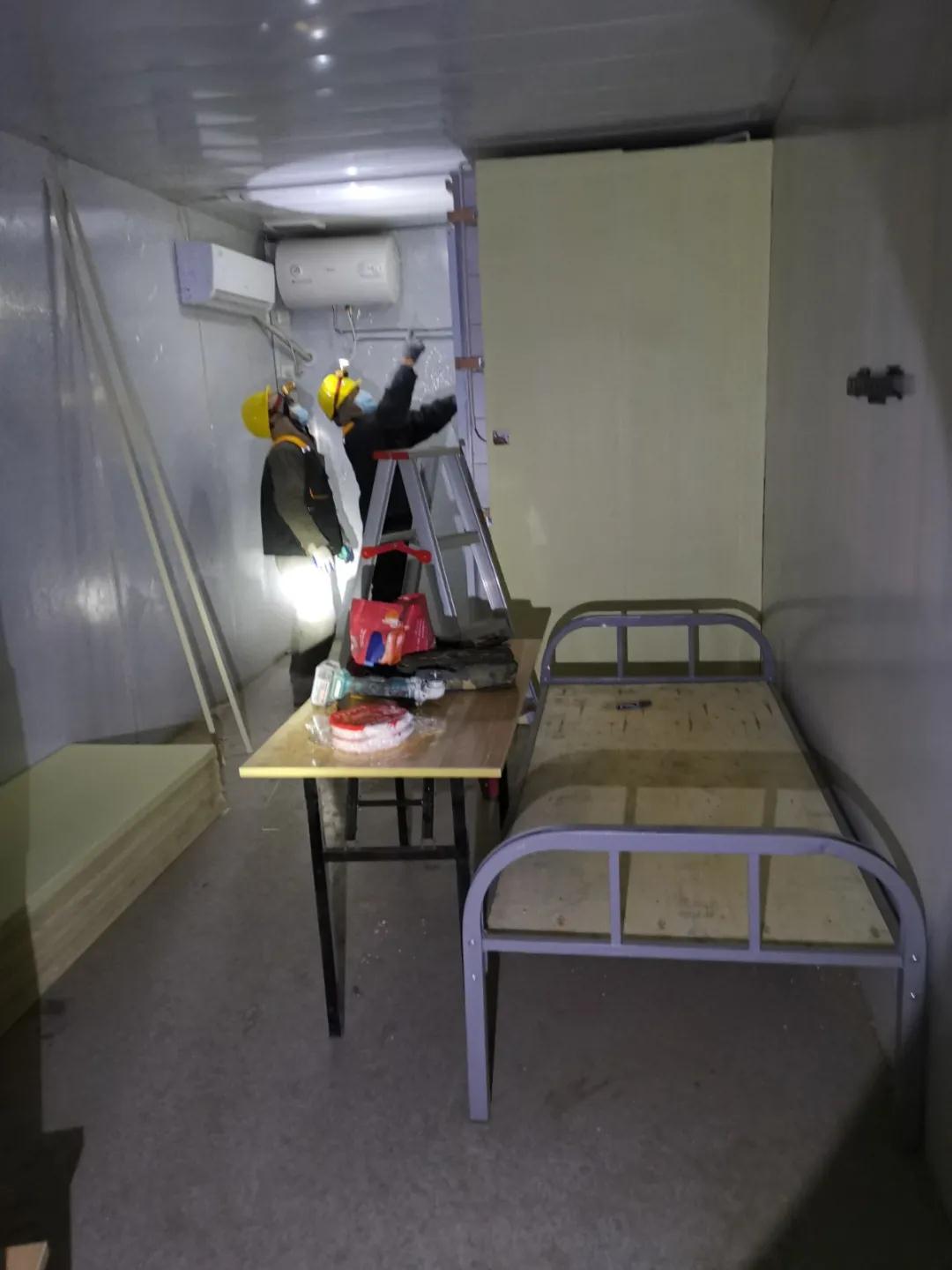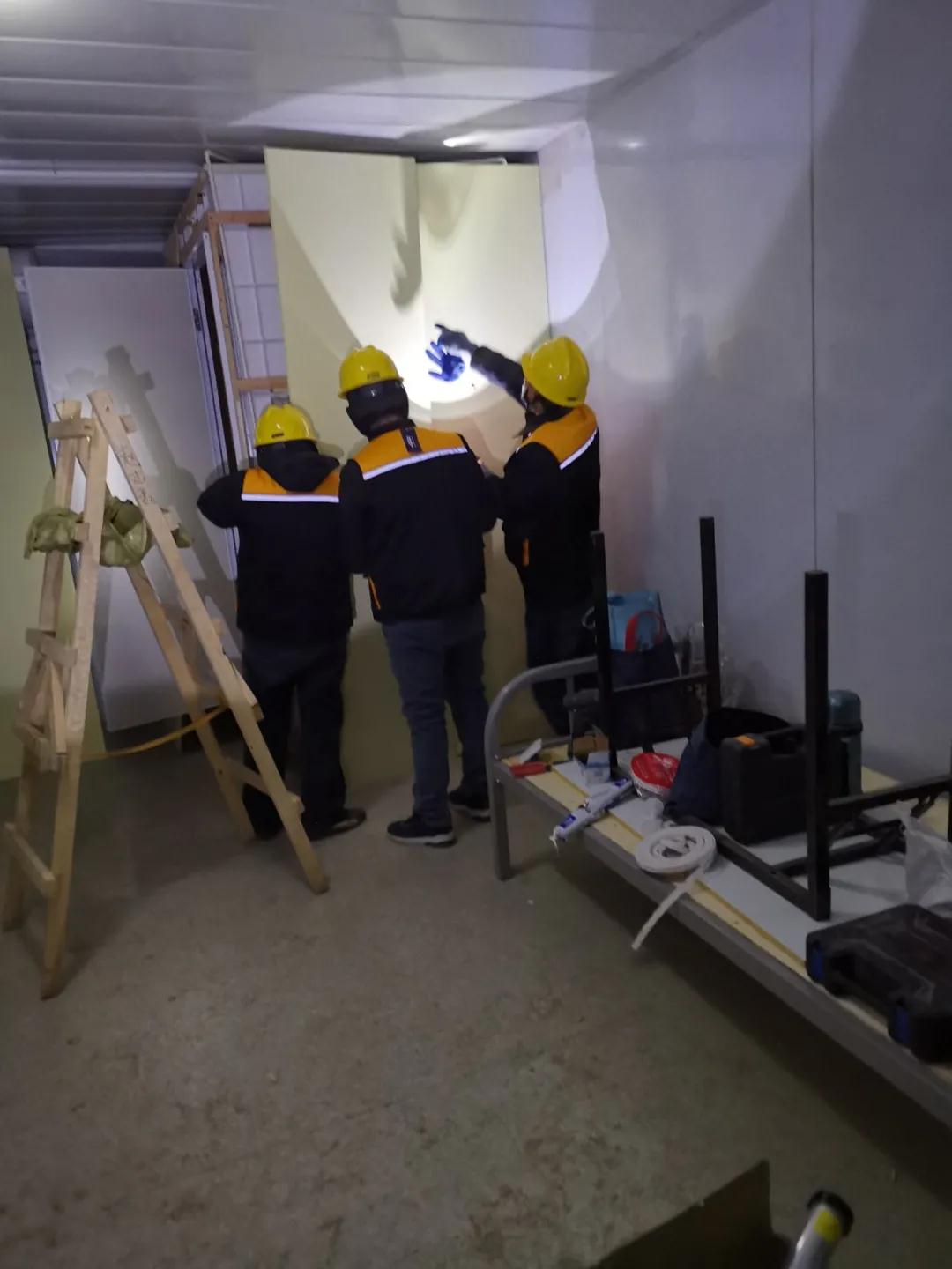 接到指令,馬上參建。19日晚,常宏第一批六名工人進(jìn)入隔離區(qū)施工現(xiàn)場,并迅速連夜投入工作,為隔離間的衛(wèi)生間外側(cè)安裝墻板,直至凌晨。短暫休整后,于20日一早再次投入施工中,仍有更多常宏工人將在辦理完成社區(qū)/村/鎮(zhèn)的出入手續(xù)后陸續(xù)加入到現(xiàn)場。