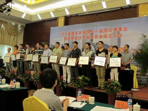 2012年6月27日河北省建筑裝飾學(xué)會(huì)組織召開(kāi)第一屆第四次理事會(huì)暨裝飾設(shè)計(jì)專業(yè)委員會(huì)成立大會(huì),會(huì)上對(duì)榮獲2011年河北省建筑裝飾行業(yè)先進(jìn)企業(yè)、優(yōu)秀企業(yè)家進(jìn)行了表彰,常宏裝飾也又一次被評(píng)為2011年河北省建筑裝飾行業(yè)先進(jìn)企業(yè),王躍總經(jīng)理被評(píng)為優(yōu)秀企業(yè)家。省學(xué)會(huì)會(huì)長(zhǎng)、秘書長(zhǎng)及各副會(huì)長(zhǎng)單位領(lǐng)導(dǎo)為獲獎(jiǎng)單位進(jìn)行了頒獎(jiǎng)。