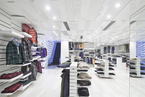 國際真維斯六代新形象是由SAKO建筑事務(wù)所的日本設(shè)計師進行設(shè)計,由常宏建筑裝飾工程有限公司湖北分公司進行施工的。